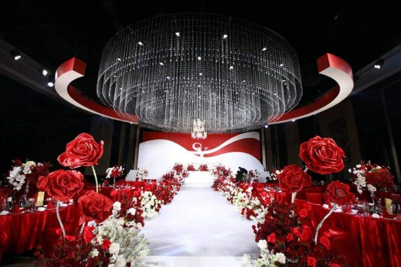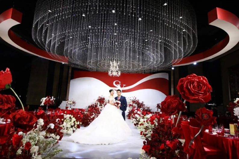 婚礼现场的布置以红色为主,豪华又浪漫。