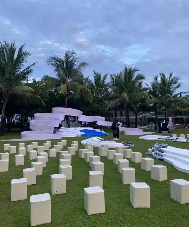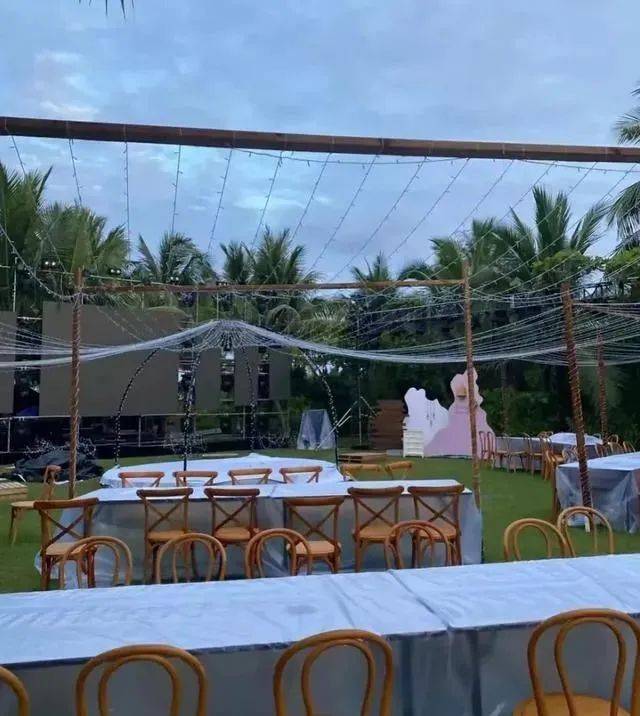 根据现场的照片来看,赵继伟的婚礼现场是在室外的草坪上,浪漫温馨、美轮美奂。
