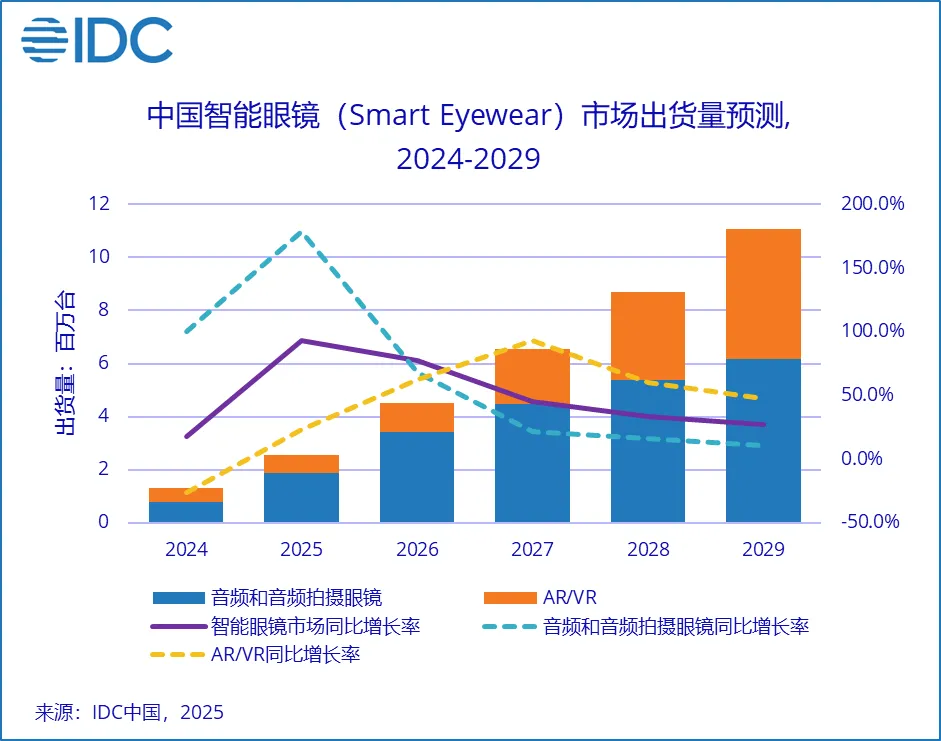 事实上,结合行业趋势来看,魅族的多元化落子颇有见地。比如,随着AI技术逐渐成熟,智能眼镜正逐渐成为行业的一大风口。IDC研报显示,预计2026年,中国智能眼镜市场出货量为450.8万台,同比增长77.7%。