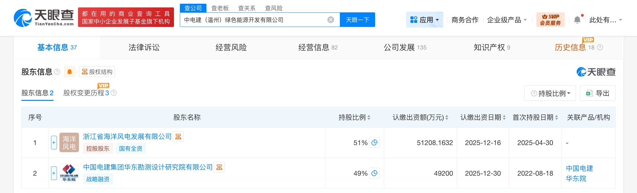该公司成立于2022年8月,法定代表人为章巍,经营范围含风力发电技术服务、发电技术服务、电气设备修理、新能源原动设备销售、新兴能源技术研发等。股东信息显示,该公司由浙江省海洋风电发展有限公司、中国电建集团华东勘测设计研究院有限公司共同持股。