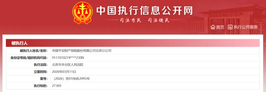 3月11日,平安财险北京分公司被北京市丰台区人民法院列入被执行人名单,执行标的2.74万元。该公司现存被执行人信息8条,被执行总金额10.02万元。该公司现存终本案件信息130条,被执行标的总金额3212.61 万元,未履行总金额2196.48万元,未履行比例68.37%。