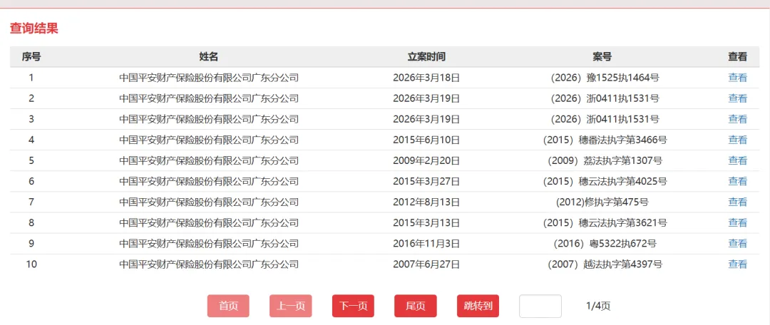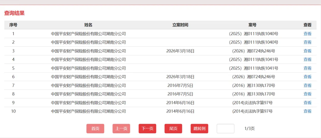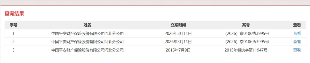 据不完全统计,截至目前,平安财险仅省级分公司层面就有广东、上海、北京、河北、湖南、陕西等15家分公司沦为被执行人,而且部分分公司近期多次被法院立案执行。