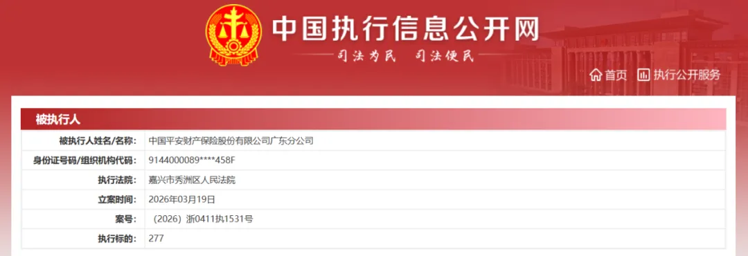 3月19日,平安财险广东分公司被嘉兴市秀洲区人民法院列入被执行人名单,执行标的仅277元。该公司现存2条被执行人信息,被执行总金额3010元。该公司历史被执行人信息多达991条,被执行总金额1.28亿元。