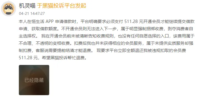 除了捆绑式收费套路用户,恒昌系助贷业务另一个为消费者所诟病的,是其用户权益保障问题。