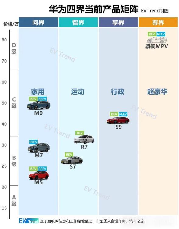“四界”正显示出分流效应:智界、享界、尊界品牌加速布局,华为的营销资源向智界R7、享界S9倾斜,一些华为门店的主位让位于智界S9,2025年春节期间,余承东开的不是问界而是享界回老家直播。