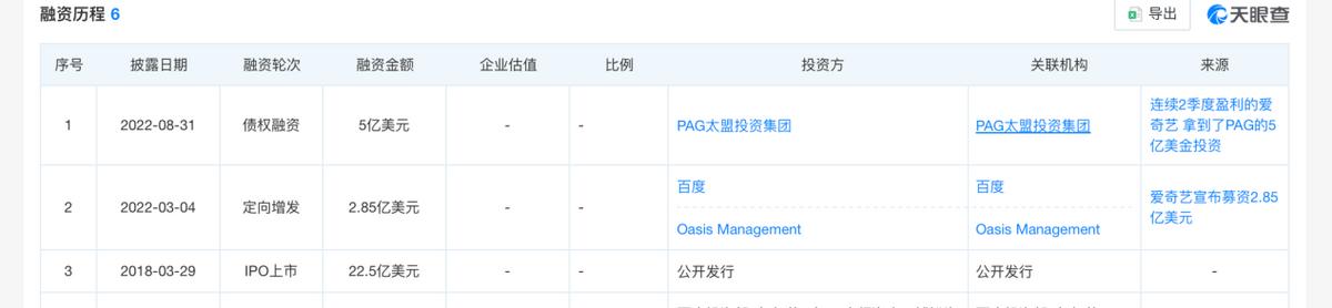 所以,这两年,爱奇艺在二级市场估值一直有压力。天眼查APP显示,2018年,爱奇艺已经IPO上市,首轮IPO募资就达22亿美元。