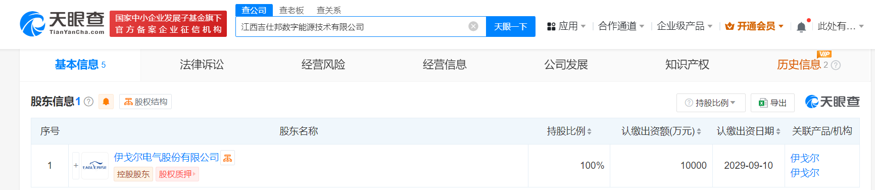 伊戈尔在江西成立数字能源技术公司 注册资本1亿观点