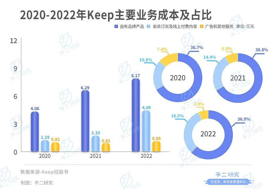 「不二研究」认为,从收入及成本占比来看,Keep押注自有品牌产品,但随之而来的是高额的销售成本,使其不堪重负。