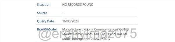 【TechWeb】据此前相关数码博主爆料,小米正在测试三款折叠手机,包括一款旗舰横折手机和一款竖折手机,其中旗舰横折手机预计为小米MIX Fold 4,而这款竖折手机则将是小米首款小折叠手机MIX Flip,截至目前已经有不少关于两款折叠屏新机的爆料传出。而现在有最新消息,近日有海外爆料达人进一步发现疑似该机已现身IMEI数据库。