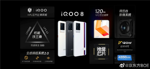 骁龙888直屏旗舰!京东方独供iQOO 8柔性OLED全面屏快报