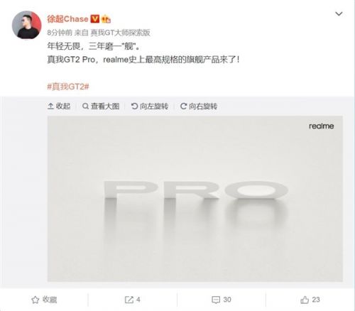 据悉,realme副总裁徐起此前表示,realme GT2 Pro将是realme史上最高规格的旗舰产品,历时3年打造,将拥有更强的性能、更好的设计、更极致的影像体验。更多详细信息,我们拭目以待。