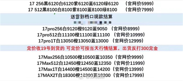 "目前来看,iPhone 17和iPhone 17 Pro的轻微溢价坚持不了多久,"知名数码博主测评小铺表示,"但iPhone 17 Pro Max现货溢价400-500元,必须是明天送到手上的那种。如果到货少,iPhone 17 Pro Max溢价幅度会加大。"