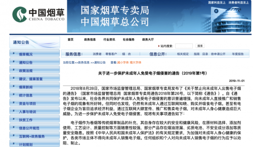 10月31日,中国烟草发布《关于进一步保护未成年人免受电子烟侵害的通告》,将电子烟再一次推上风口浪尖。