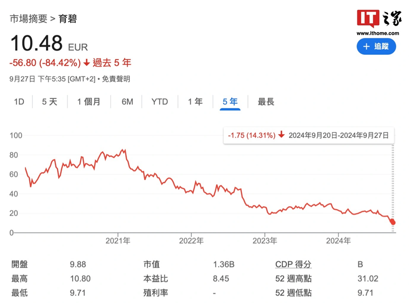 ▲ 育碧近年的股价不断走低