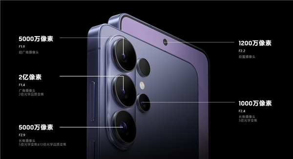 影像系统: 后置四摄全面升级。主摄沿用2亿像素ISOCELL HP2传感器,光圈升级至f/1.4,进光量提升47%;潜望长焦支持5倍光学变焦与10倍光学品质变焦,进光量提升37%。视频方面支持8K 24fps录制、ProRes编码及360度水平锁定防抖。