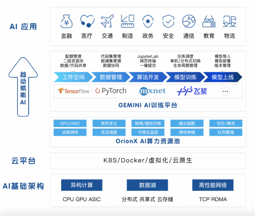趋动科技的OrionX猎户座AI算力资源池化软件能够帮助用户提高资源利用率和降低TCO,趋动科技自主研发的OrionX AI算力资源池化软件帮助客户构建数据中心级AI算力资源池,帮助企业建好AI平台、管好GPU、用好AI服务。