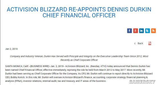 动视暴雪新CFO Dennis Durkin上任 多年老将重新上马快报