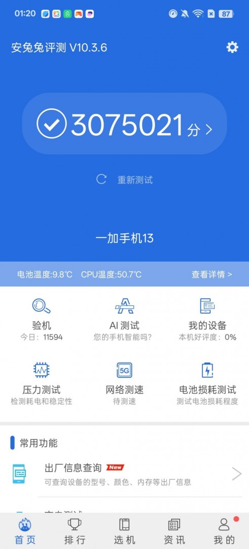从结果来看,一加13的安兔兔跑分为3075021分,这是迄今为止跑分最高的机型,堪称是“性能之王”,这样的表现完全可以满足多样化的应用需求。