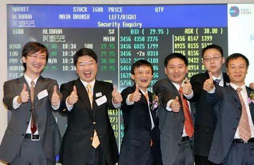 一个月后,阿里巴巴公司正式登陆港交所。发行价格为13.5港元,融资17亿美元。上市首日,开盘价格飚至30港元,后涨至41.8港元,为IPO价格三倍,夺得“香港新股王”称号。