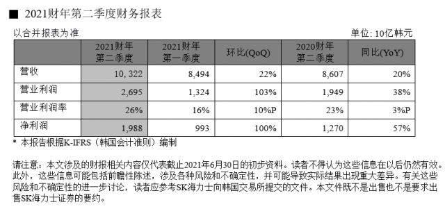 SK海力士发布2021Q2财报 营业利润率为26%快报