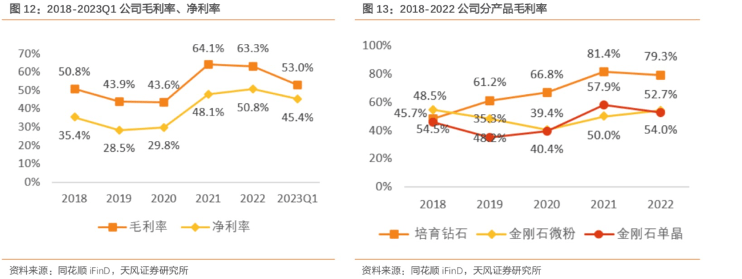 进一步珠宝首饰,退一步金刚石单晶。在同一条产线上,力量钻石可以通过调控两种产品的比例来回避不同产业的风险。