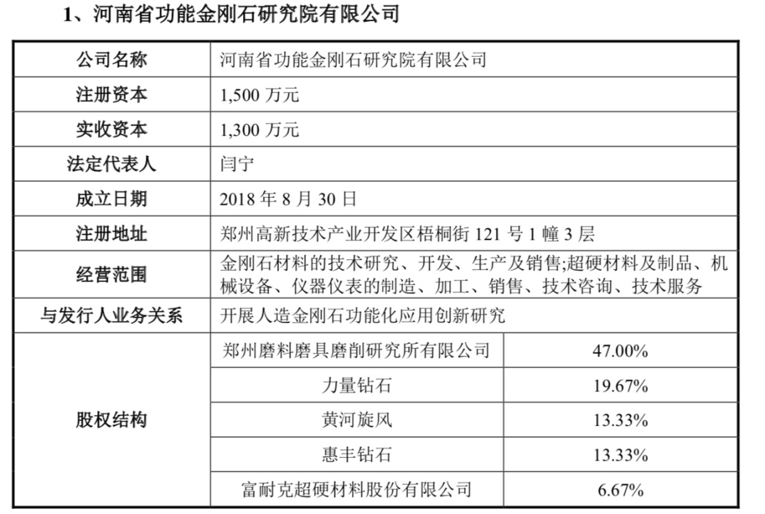 郑州三磨所是国内最主要的人造金刚石合成设备——六面顶压机的核心供应商,而力量钻石与郑州三磨所等企业合资成立了河南省功能金刚石研究院有限公司,可见两者关系非同一般。