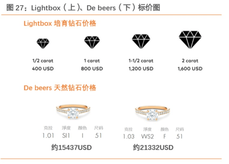 而放到大环境里,相比于美国的12.3%和全球市场的8%,中国的培育钻石市场渗透率较低,为7%。随着消费者对培育钻石的认知逐渐成熟,行业景气度有望进一步提升。