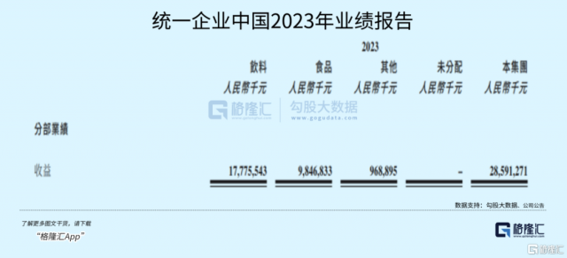 统一中国2023年营收285.91亿元,同比微增1.18%。其中,饮品业务收入177.76亿元,在总收入中占比达到了62.2%,同比增长8.4%,占到了总收入的62.2%。