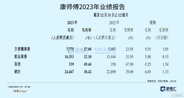 从康师傅的饮品业务来看,饮品的毛利水平远高于方便面,2023年康师傅饮品业务毛利率为32.1%,而方便面毛利率为27%。