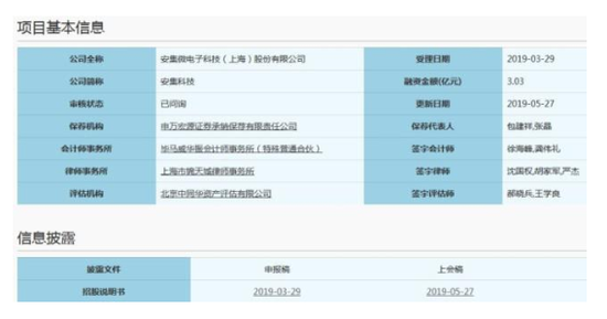 安集科技受理时间为3月29日,保荐券商为申万宏源(4.720, 0.03,0.64%)承销保荐。安集科技成立于2006年,注册资本为3983.13万元。公司主营业务为关键半导体材料的研发和产业化,产品包括不同系列的化学机械抛光液和光刻胶去除剂,主要应用于集成电路制造和先进封装领域。