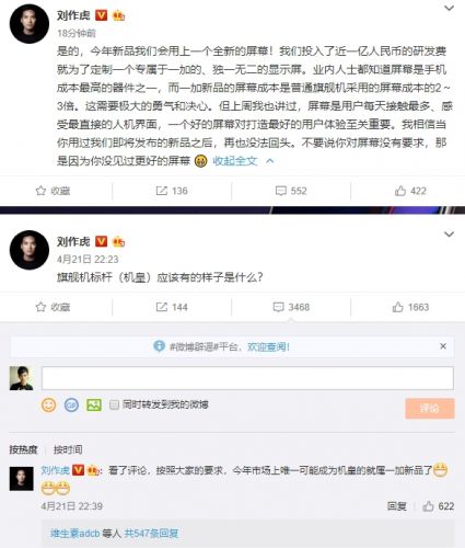 刘作虎表示,屏幕是用户每天接触最多、感受最直接的人机界面,一个好的屏幕对打造最好的用户体验至关重要。因此他宣称:“今年新品我们会用上一个全新的屏幕!我们投入了近一亿人民币的研发费就为了定制一个专属于一加的、独一无二的显示屏。”并称一加新品的屏幕成本是普通旗舰机采用的屏幕成本的2~3倍。