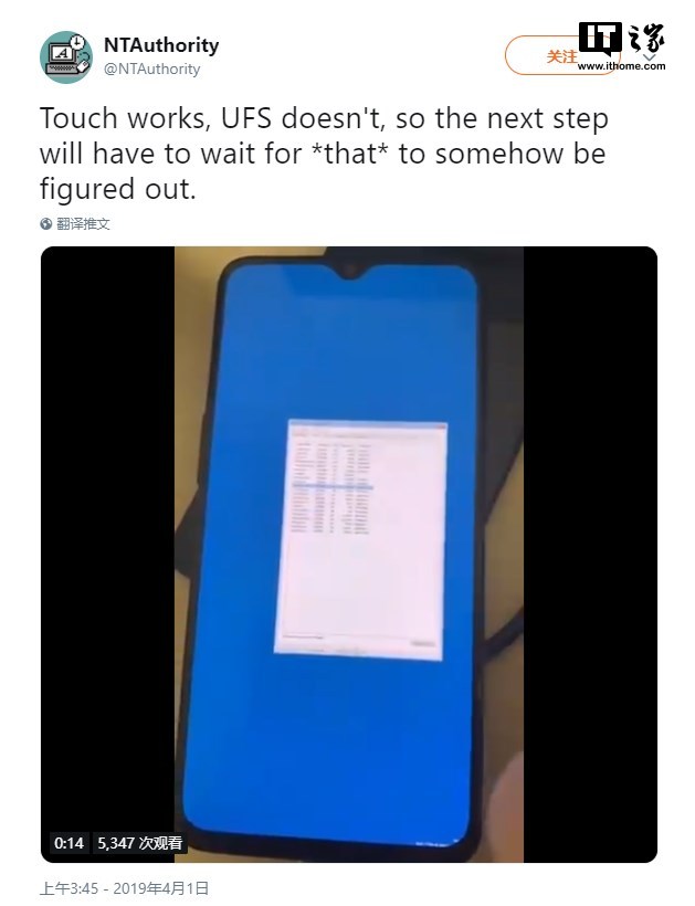 根据Twitter内容显示,Windows PE支持了触摸操作,但UFS还没解决。