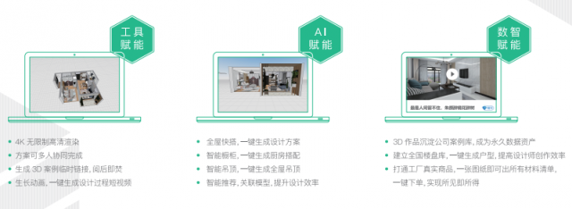 具体来看,利用全屋快搭智能算法技术,8min内即可完成整屋设计,应用准确率高达90%。过去设计师使用3Dmax软件需要一天来完成的工作,现在通过空间智能布局的AI算法,设计师能快速应用样板间案例,套用专业灯光师结合AI技术制作的万能灯光模板,实现快速出图。完成设计方案后10秒即可生成高清效果图,一键生成全屋3D效果图。