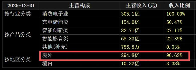 如前所述,安克创新2025年境外营收占比达96.62%,其中北美单一市场收入占比46.31%,亚马逊单一平台收入占比则高达52.29%。这种“市场+平台”的双重高度依赖在行业上行期,无疑为增长核心驱动力,在外部环境承压阶段,则构成显著经营风险敞口。