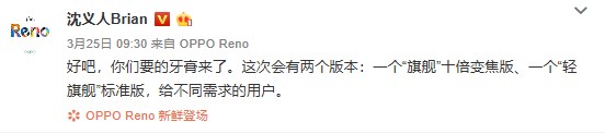 而随着4月10日发布会的临近,越来越多关于OPPO Reno系列新品的硬核科技浮出水面。作为承载OPPO下个10年体现“创造力”重要使命的全新产品线,Reno有10倍变焦版和标准版两个版本。