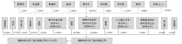 华纳药厂控股股东为华纳医药,直接持有公司53.08%股份,实际控制人为黄本东。黄本东持有华纳医药2,413.00万出资额,占华纳医药出资额的64.67%。截至招股书披露日,华纳药厂的股权结构如下图所示: