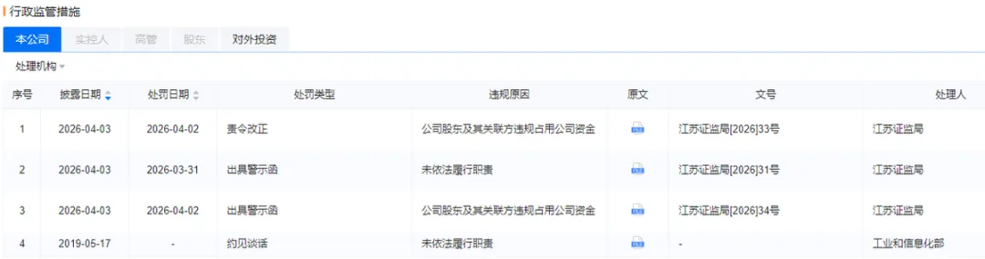 4月2日,江苏证监局对红豆集团采取了两项行政监管措施,分别是责令改正与出具警示函,涉及资金占用与信息披露违规两大问题。