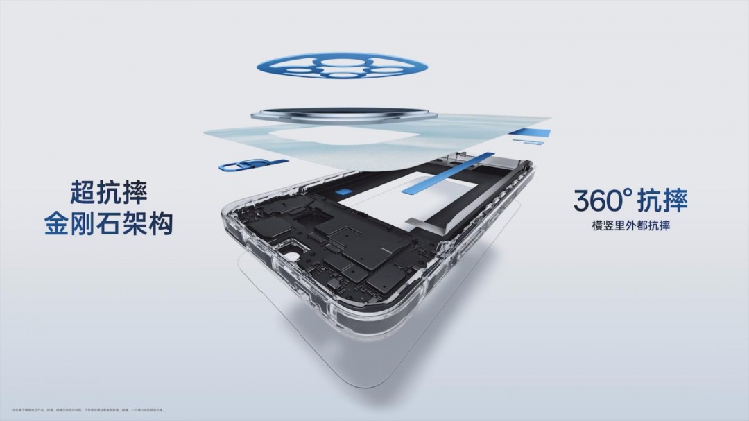 A5 系列新品沿用超抗摔金刚石架构,OPPO 旗舰同款晶盾玻璃抗摔更抗划,配合民航客机机翼同款铝合金中框,实现机身前后内外 360° 抗摔,重新定义千元机抗摔新高度。受益于行业领先的材质用料与结构设计,A5 系列新品成为行业首个通过 14 项全方位军标环境测试的千元机,哪怕面对剧烈温差转换、盐雾侵蚀、猛烈冲击等极端场景,始终稳定如初。