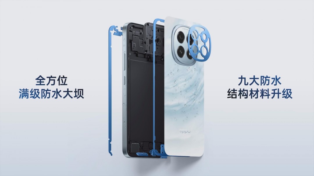 OPPO A5 系列新品全系通过 IP69、IP68、IP66 三防认证,全系标配满级防水冠绝同档,整机应用了九大结构及材料上的防水强化设计,全方位构建「防水大坝」,防水能力拓展到了更严苛、更多样的水环境,可抵御暴雨、泡水、高压喷水、热水蒸汽等18种复杂水环境挑战,真正做到整机防水,不挑种类。