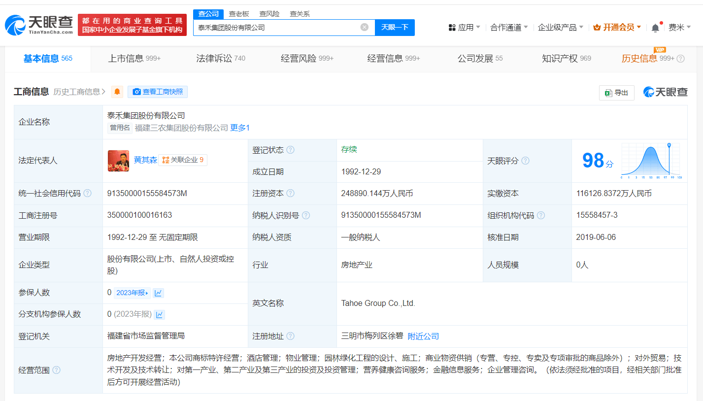 天眼查法律诉讼信息显示,3月19日,泰禾集团股份有限公司新增2条被执行人信息,执行标的合计27亿余元,其中一起案件被执行人还包括福州新海岸旅游开发有限公司、黄其森等,执行法院为福建省福州市中级人民法院、福州市晋安区人民法院。