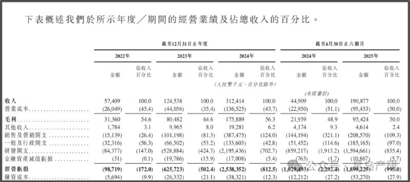 招股书显示,智谱近年营收增长迅猛。2022年至2024年,智谱的营业收入分别为5740万元、1.25亿元、3.12亿元,复合年增长率达到130%。2025年上半年,公司营业收入为1.9亿元。