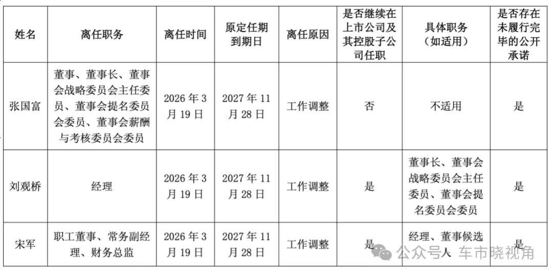 根据北汽蓝谷公告,张国富于3月19日起不再担任公司十一届董事会董事、 董事长、董事会战略委员会主任委员、董事会提名委员会委员、董事会薪酬与考核委员会委员职务。