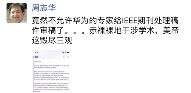 纽约IEEE禁止华为成员 参与论文审稿或编辑 南大周志华表示强烈不满快报