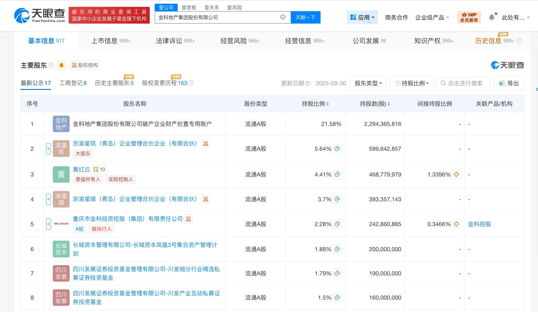 该公司成立于1994年3月,经营范围包括房地产开发、物业管理、机电设备安装,销售建筑、装饰材料和化工产品、五金交电,自有房屋租赁,企业管理咨询服务等。股东信息显示,该公司由黄红云、京渝星筑(青岛)企业管理合伙企业(有限合伙)、重庆市金科投资控股(集团)有限责任公司等共同持股。