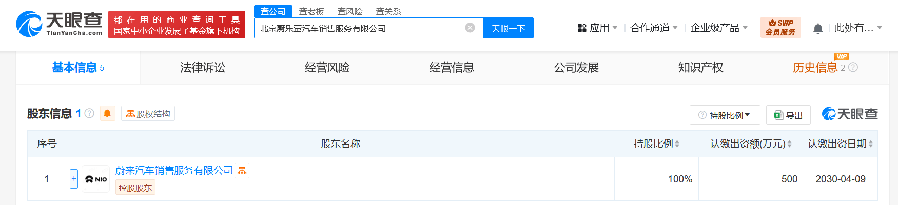 蔚来成立蔚乐萤汽车销售服务公司 注册资本500万观点
