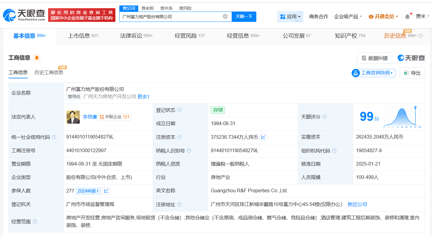 天眼查法律诉讼信息显示,10月15日,富力地产(02777.HK)、广州富力兴盛置业发展有限公司新增一则被执行人信息,执行标的6.4亿余元,涉及合同纠纷案件,执行法院为广东省广州市中级人民法院。