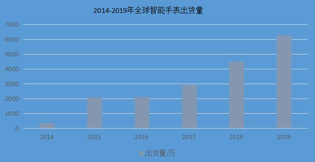 据智研咨询调查数据,2015年全球智能手表出货量已经达到2080万,较2014年增长了近5倍,这个数据仍在增长。截止2019年,全球智能手表的出货量已经达到6263万,同比去年增长39.2%。