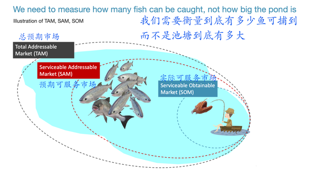 简单来分,市场大致有三类:潜在的总预期市场(Total Addressable Market)、预期可服务市场(Service Available Market)、实际可服务市场(Service Obtainable Market)。