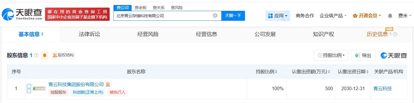 天眼查App显示,近日,北京青云存储科技有限公司成立,法定代表人为林源,注册资本500万人民币,经营范围包括人工智能应用软件开发、人工智能基础软件开发、数据处理和存储支持服务等。股东信息显示,该公司由青云科技(688316)全资持股。