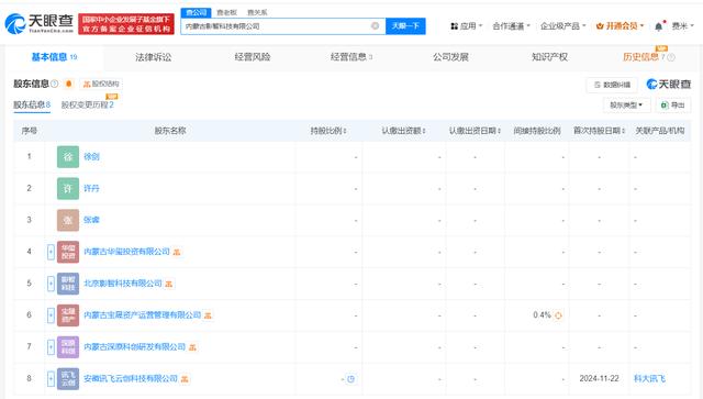 天眼查App显示,近日,内蒙古影智科技有限公司发生工商变更,新增科大讯飞旗下安徽讯飞云创科技有限公司、内蒙古宝晟资产运营管理有限公司为股东。